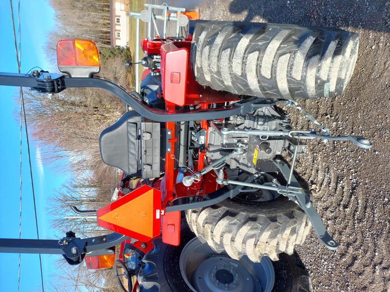 MF1E.35H is 34.5 Eng HP/ 27.6 PTO HP, 3-range hydrostatic transmission, side-by-side hydro pedals, 4WD, loaded rear tires, installed block heater, new model has upgraded seat, rubber floor mats, new design instrument panel, 3-cylinder diesel, free local delivery